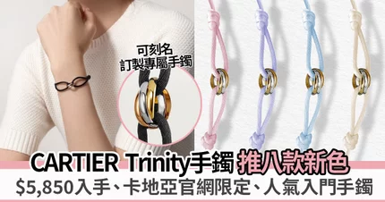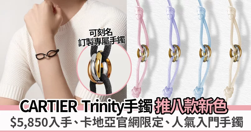 Cartier已推出超過25款顏色絲繩,今季再次推出多款新色讓大家挑選,全部顏色都百搭易襯、年輕時尚。如本身已有Trinity手鐲,即可透過官網實時查詢服務預約免費更換其他顏色絲繩,這$5,850入門款珠寶同樣擁有殿堂法國珠寶的窩心服務。(預約查詢)