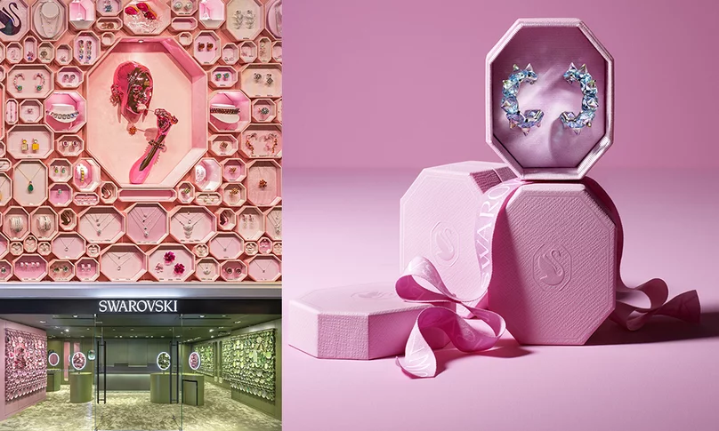 Swarovski Instant Wonder專門店以一個糖果般的夢境為主題,內以Swarovski全新八角形包裝打造出輪廓鮮明、時尚視覺感觀的景,呈現各種Swarovski水晶生活用品,如配件、首飾、腕錶、家居飾品和配飾。