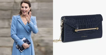 凱特王妃於2020年在蘇格蘭活動上攜著Strathberry的海軍藍色鱷魚壓紋款的Multrees Chain Wallet亮相,這款銀包款式配備一條鏈帶,除了手攜外也可斜揹使用,足夠收納信用卡、零錢紙幣等外出必需品。而凱特王妃使用Strathberry的手袋後,即令手袋成為大熱,引起全球搶購潮曾極速斷貨!