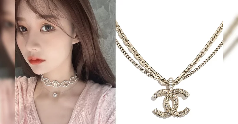 這款Chanel頸鏈特別地以粗幼雙鏈帶設計,並以水晶打造的經典品牌雙C Logo吊墜作點綴,特顯出高雅感。