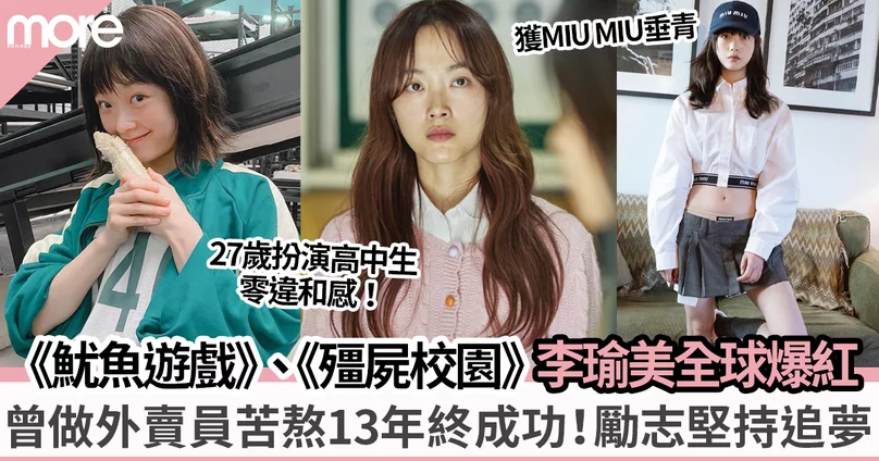 現年27歲的李瑜美絕對是滄海遺珠,事實上她早於2009年出道,出道至今13年,拍過不少電視劇和電影可惜一直未能嶄露頭角,只能出演一些閒等角色,演藝之路甚是坎坷。李瑜美曾因生活拮据,做過外賣員幫補生計只為堅持追夢,幸而最後她沒有放棄演員夢想,終憑《魷魚遊戲》而爆紅,如今再憑《殭屍校園》掀起另一事業高峰,成名之路十分勵志!