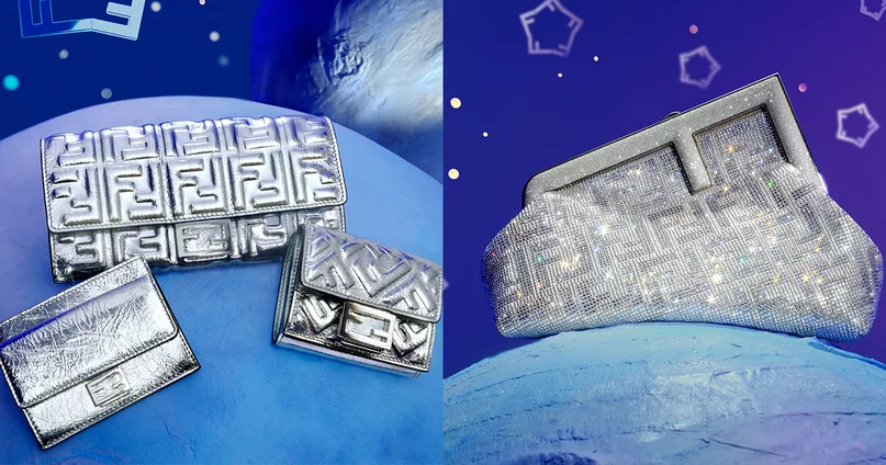 今年的冬季系列以銀色為主要色調,透過銀光粼粼的皮革和水晶,將配飾和皮具點亮。高雅的深藍和森林綠色調為這些璀璨單品錦上添花。FENDI的經典Selleria粗縫線和Cuoio Romano皮革的燙銀效果,展現了品牌的頂尖皮革工藝。
