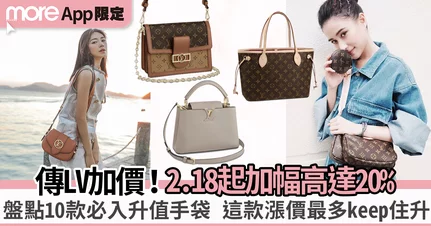 Louis Vuitton一向都是不少女生名牌手袋入門必選之一,早前全球數據分析公司 Kantar BrandZ 公布2022年「全球最有價值品牌排行榜」,LV首次排行前十名,更是第一個奢侈品牌打入排行榜,可見其價值不容置疑!更有指,LV女裝手袋部份在四年內漲價22%,其中最高價格的手袋款式是LV行李箱和city steamer鱷魚皮手袋款式。想投資LV手袋的女士們,絕對要看以下推介10大LV升值手袋款式!