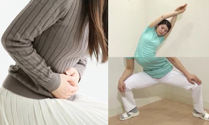 第二招主要是針對訓練括約肌,首先雙腳打開,做出「紮馬」的半蹲動作,然後身體看向右方傾,右手前臂放在右腳大腿,而左手則放在左腳膝蓋上,維持動作約 10-15 秒,然後再向左傾,動作換方再做一次,同樣每天早、午、晚各做一次即可。