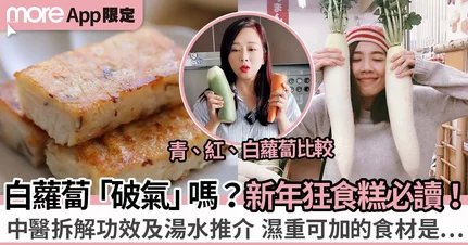 港人新年最愛煎糕食,當中最受歡迎的非蘿蔔糕莫屬了!綿綿的白蘿蔔絲與臘腸、臘肉的油脂融合,配上瑤柱、蝦米的鹹香,一不小心便會吃太多。不過,坊間一直有指「白蘿蔔會破氣」,到底是真是假?一於看看中醫的看法!內文更附有各款蘿蔔的功效、進食注意事項及湯水推介!
