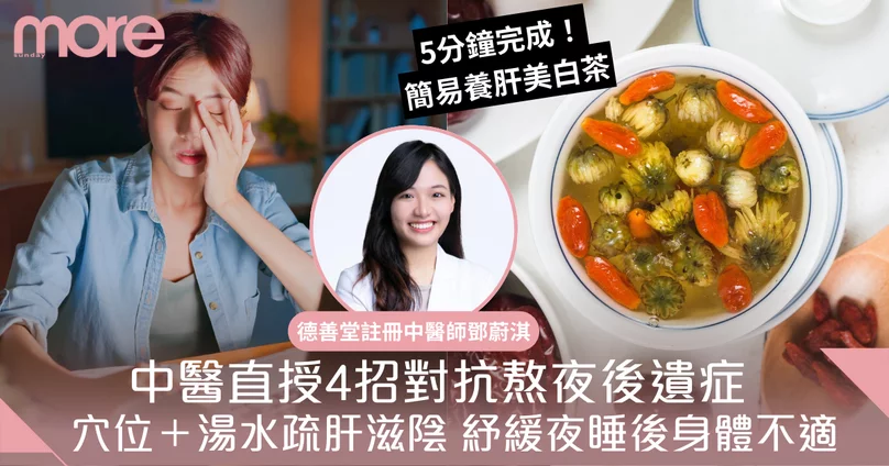 熬夜|都市人熬夜成常態,根據香港中文大學的調查,超過60%的香港人每週至少熬夜一次,這對健康影響深遠。長期熬夜不僅增加心血管疾病、糖尿病和免疫系統問題的風險,還可能縮短壽命!如生活作息難以避免熬夜,究竟有甚麼方法去對抗熬夜後遺症?今次《Sunday More》邀請德善堂註冊中醫師鄧蔚淇,為大家拆解熬夜4大壞處,附穴位按摩及食療湯水,紓緩熬夜後的身體不良影響!