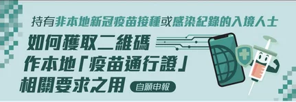 | 5月5日或以後入境並須接受強制檢疫的人士 | 抵港時將於口岸(包括陸路及機場口岸)獲發強制檢疫的檢疫令以外,同時獲發供本地使用的疫苗接種紀錄二維碼和「臨時疫苗通行證」。 |