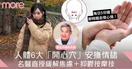 舒緩情緒方法|中醫:解鎖人體6大「開心穴」輕鬆緩解焦慮/抑鬱