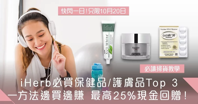 iHerb必買保健品/護膚品Top 3!快閃一日限定用ShopBack邊買邊賺 最高25%現金回贈