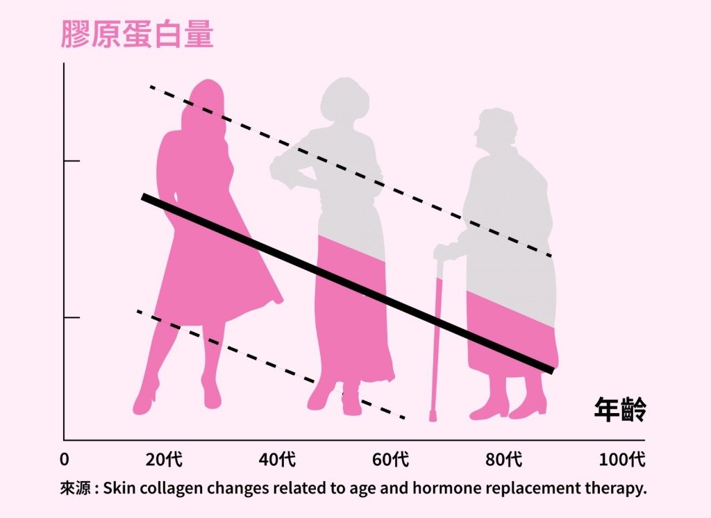 膠原蛋白:它是維持皮膚彈性、光澤與保濕的基礎,但會隨年齡(特別是25歲後)和壓力而流失,必須透過內服來補充。