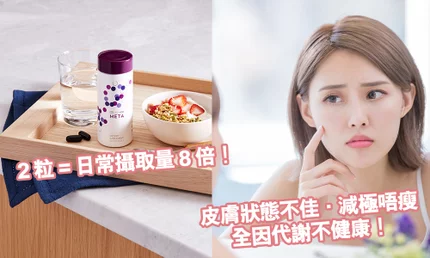 Nu Skin 歷時長達 7 年的獨有研究發現,花青素有助支持核心新陳代謝,當中的矢車菊素及翠雀花素是最有效保護細胞、改善新陳代謝健康的花青素結構, ageLOC® META 沛活便針對影響代謝健康的根源,以黑加侖子、山桑子及黑米這 3 種最強食材為基礎,加上專有 ageLOC® 抗衰老科技及獨家科研成果,每日 2 粒 ageLOC® META 沛活就等同攝取 8 倍的日常花青素攝取量!