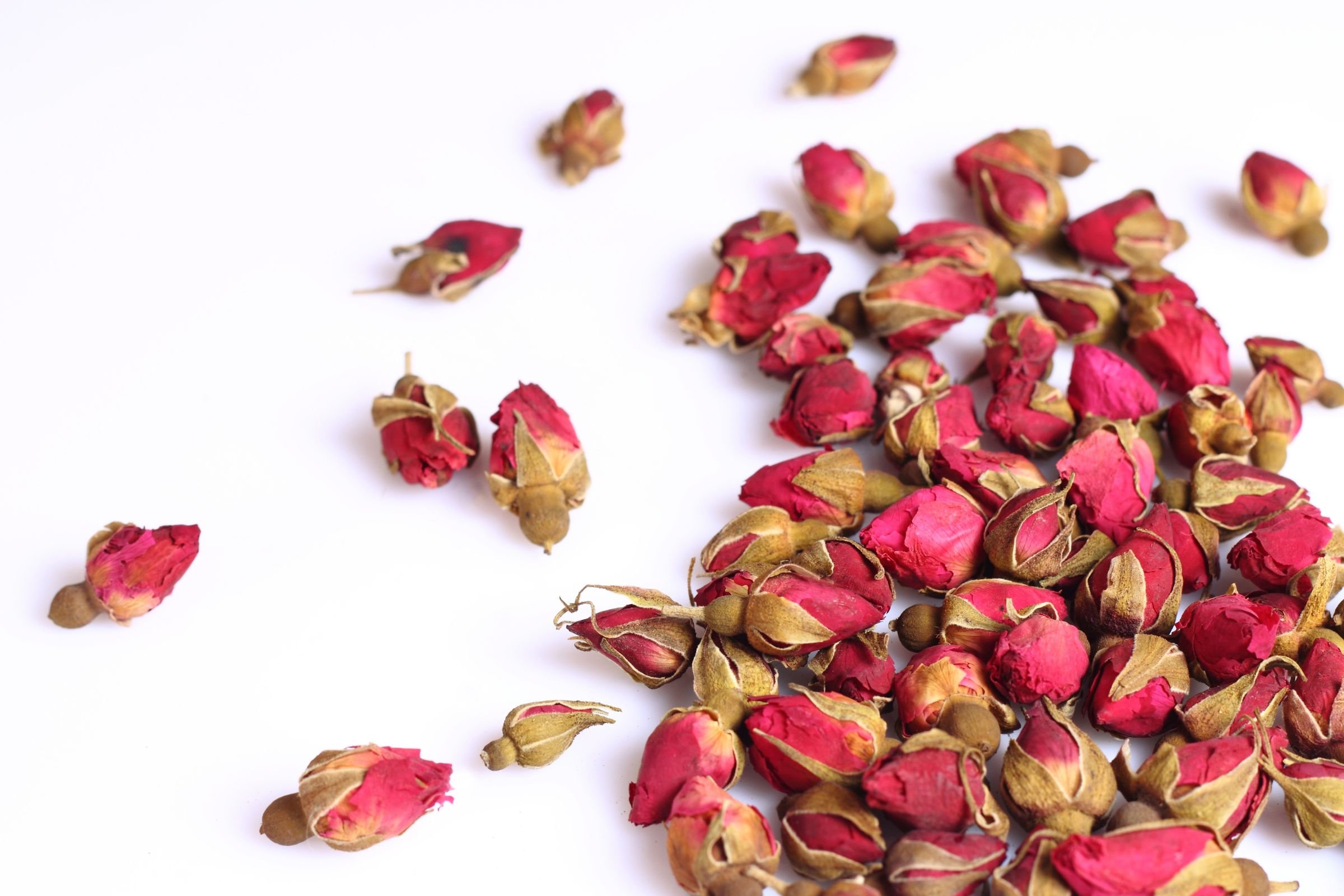 材料: 乾玫瑰花三朵,蓮子芯半錢,冬瓜皮一錢,龍井茶葉二錢,綠豆衣半錢,滾水適量。