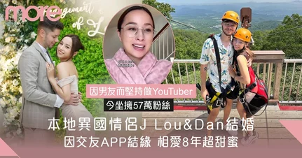 中法混血兒J Lou(林欣) ,憑著標緻的外表和搞笑形象,成功在網上殺出一條血路,不但在IG上有逾57萬粉絲追蹤,YouTube頻道亦累積逾37萬訂閱人數,成為現時當紅KOL。她的影片的一大看點就是與英國男友Dan的有趣互動,尤其是教男友講廣東話系列效果搞笑逗趣!二人年初訂婚,公開的婚照盡是甜蜜細節。
