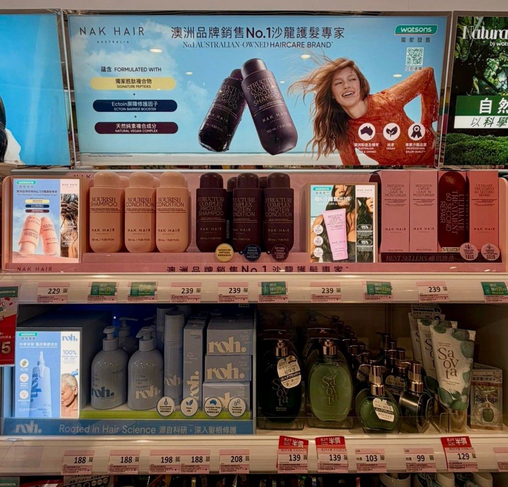 這份成功經驗,也讓品牌對開拓亞洲市場充滿信心。NAK HAIR選擇與香港屈臣氏進行獨家合作 ,香港是我們在亞洲的首個重點推出市場, 聯手亞太地區屈臣氏,為更多消費者帶來天然、高效、 專業的澳洲護髮選擇,聚焦四大市場 (包括新加坡、香港、台灣及中東) 並計劃逐步擴展,引入針對 頭髮的日常護養進行Skinification (護膚化)概念,強調注入 Peptides 和 Ectoin 等美容 成分,將護 膚科技創新延伸至護髮領域。