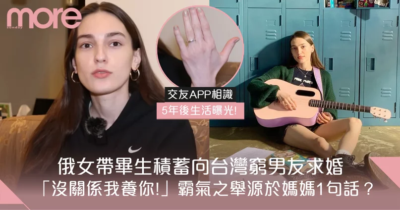 很多女生都夢想有一場轟轟烈烈的戀愛,以下俄台異地戀的故事可會令你感動?一名俄羅斯女生Mila在交友APP認識到一個沒工作和沒錢的台灣男生,見面5天後便開始交往,Mila甚至帶所有積蓄到台灣求婚,告訴男友:「沒錢沒關係,我養你就好!」原來這等霸氣之舉,竟源自Mila媽媽的一句話?