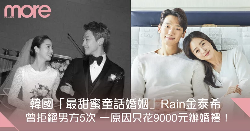 Rain和金泰希自2013年公開戀情,2017年結婚,當大家都期待韓國一線明星的世紀婚禮時,兩人卻只花9,000港元,舉辦一場低調婚禮,只邀請幾位朋友到教堂,連照片也是朋友幫拍!