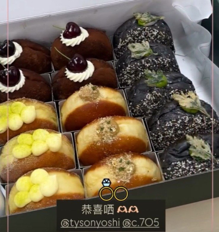 在婚禮細節方面,Tyson及Christy亦極盡講究,例如送給親友的回禮禮盒來自意大利名牌餅店Dough Beings,每盒甜甜圈禮盒價值超過500港元,大盒的甚至過千元!