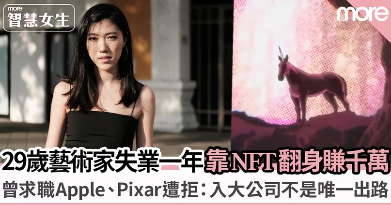 知名美國數位藝術家Beeple曾在佳士得拍賣(Christie’s),以6900萬美元的天價創下紀錄賣出NFT作品,顛覆了傳統藝術市場。隨著「元宇宙」概念興起,NFT熱潮席捲全球,NFT藝術品不但是人人趨之若鶩的投資收藏之選,更為一眾創作者提供浩瀚無窮的空間,揮灑「筆墨」、大展拳腳,在虛擬世界將天馬行空的靈感一一實現。在失業期間,碰巧遇上NFT熱潮,Emily Yang開始觸及「加密藝術」,一次偶然合作徹底改變了她的人生。