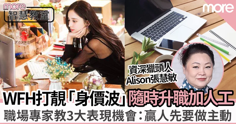 智慧教室職場篇|為避免繼續擴大疫情,不少公司都採用居家工作政策(Work From Home),當每位同事都遠在家中工作,又如何能表現自己的工作能力給老闆,留下好印象升職加薪?一於請教資深獵頭人Master Alison(Son姐)教大家幾個簡單方法為自己打「身價波」吧!