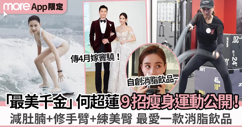 就算多忙,為了保持完美體態,何超蓮堅持每天運動,難怪操出令女生們都豔羨的完美身材。除了最愛的滑水、騎單車外,她更會經常上健身室,玩戰繩、啞鈴、Pilates,有助減肚腩、修手臂及緊實臀部,令整體線條更好。