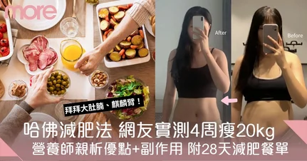哈佛減肥法|為肥胖糖尿病患者而設的哈佛減肥法近年在網絡爆紅,不少網友都紛紛分享自己的成效,大約能在4周內減下11-20kg,不過註冊營養師陳曼婷Ariel Chan指出哈佛減肥法存在風險和缺點,大家應酌量嘗試,看看適不適合自己。
