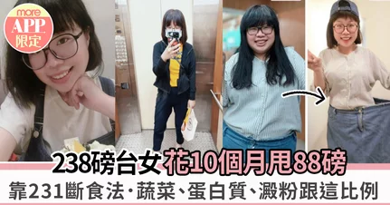 238磅台女花10個月減88磅 靠231斷食+蔬菜、蛋白質、澱粉要跟比例