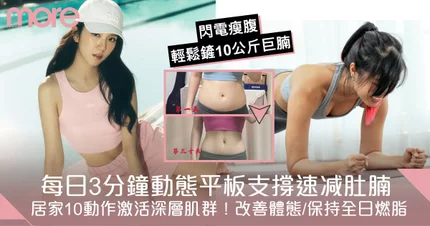 動態平板支撐|平板支撐(Plank)是現代健身中非常受歡迎的一項核心訓練動作,尤其是動態平板支撐,更因其多變的姿勢和高效的燃脂效果,成為許多人減肚腩、改善體態的首選。今次《MORE》將深入介紹動態平板支撐的原理、好處及實用技巧,幫助你在家輕鬆打造強健核心與理想身形。