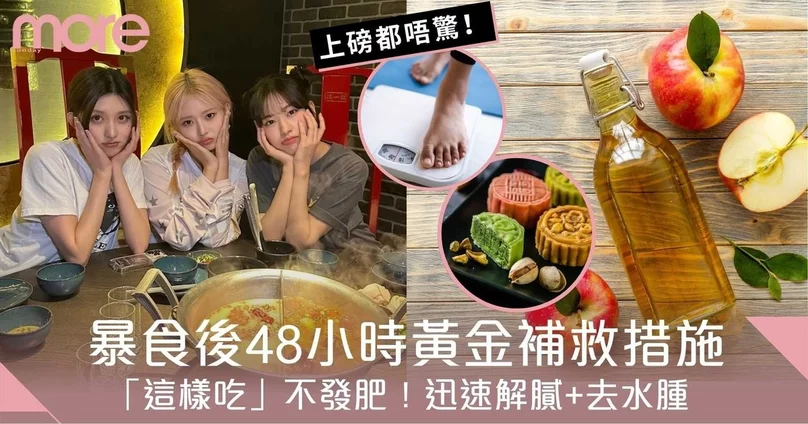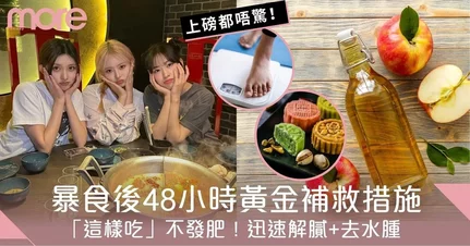 火鍋、串燒、臘肉、公仔麵及各式醬料等高碳水、高糖分食物,容易令身體在大餐後出現血糖波動及脂肪堆積。建議隔天主動補充約2公升的水分,促進新陳代謝,加速體內多餘鹽分和糖分的排出。同時,多攝取富含鉀質的食物,如柚子、西瓜、香蕉、菠菜和芥菜,有助於平衡體內電解質,減輕水腫。若想進一步控糖阻碳水,可選擇含有丙醇二酸(如蘋果、葡萄柚等)的食物,能抑制部分碳水化合物吸收,減少血糖急升,幫助身體更快回復輕盈狀態。這些飲食調整,有效幫助身體從大餐後的負擔中快速回復。