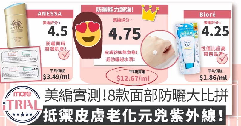 面部防曬產品推薦 | 編輯實試8款專櫃開架防曬大比拼!有效阻擋紫外線,炎炎夏日必備! | iTRIAL比拼