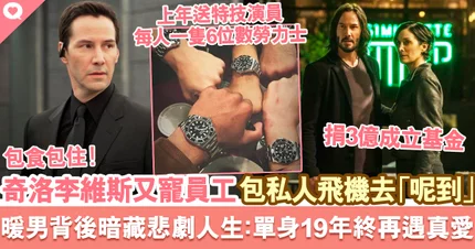 奇洛李維斯「最善良巨星」包機包食宿招待親友去首映、豪送勞力士、曾捐7成片酬成立基金 暖男背後暗藏悲慘故事:單身19年終覓好歸宿!