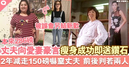 老公向286磅愛妻豪言:「減至54KG送妳鑽石」 2年內即踢走150磅 前後判若兩人惹丈夫情深表白!