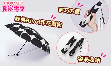 芬蘭國寶級設計品牌Marimekko憑藉色彩鮮明的印花圖案風靡全球,由1951年品牌誕生至今已有逾70年歷史,所創作的花朵圖案更有500多款,今次More送出的Marimekko縮骨遮,印有Kivet印花圖案,這經典圖案由Marimekko設計師Maija Isola於1956設計,據說是Maija Isola忽發奇想以剪刀剪出圓形圖案時剪出不規則像石頭的圓形,於是以意解石頭的Kivet為印花圖案命名,成為Marimekko經典印花款式之一。