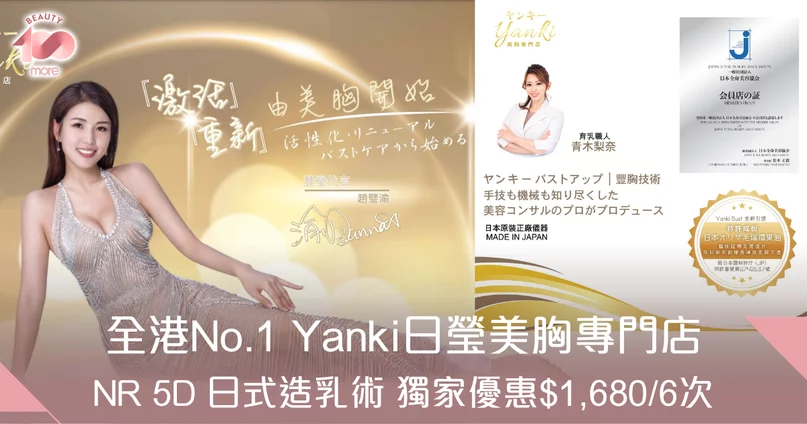 Yanki日瑩美胸專門店會定期引入日本最新嘅豐胸儀器及矯胸技術,以及嶄新豐胸配方,為每一位客人得到最佳嘅效果。Yanki育乳職人擁有超過20年美胸經驗,亦會定期去日本培訓及與日本ENC株式會社共同研發專利豐胸配方。Yanki 持日本全身美容協會會員及店內育乳師亦持有效美胸認證,提供更專業更有效的豐胸知識給每一位客人。