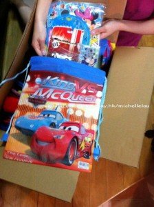 籌備一個生日會,真的不是易事,買了這麼多,以為完了嗎?還有一樣不可少的,就是回禮禮物包,用來送給前來參加生日會的小朋友。知道坊間也有現成的禮物包,可是我嫌太公式,又是文具之類。於是我由禮物袋,到內裡的小玩具、小飾物和貼紙等,都由我親自揀選,價值雖然平宜,但卻滿載我們的心意。