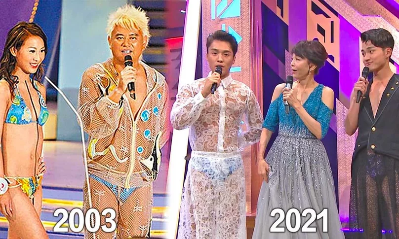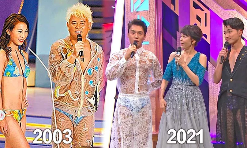 《香港小姐2021決賽》昨日圓滿落幕,除了冠軍宋宛穎成為熱話外,決賽中表演嘉賓及主持表現也引來不少討論及爭議。其中,丁子朗、周嘉洛泳裝環節的造型更是引來大量負評,有網民指他們是致敬叻哥03年的打扮。