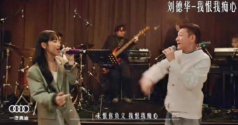 劉德華 炎明熹 華仔與Gigi上台合唱《我恨我痴心》。(圖片來源:抖音@劉德華)