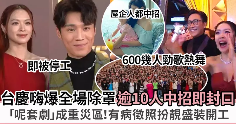 今年台慶夜全台數百藝人雲集,在紅地氈爭妍鬥麗又出盡力表演,透明口罩都唔多見人用,結果集體中招,據知無綫已有超過10名曾出席台慶的藝員確診,上榜名單有正為新劇《妳不是她》開工的馮盈盈及丁子朗、《愛.回家之開心速遞》的袁文傑、麥詩晴和古佩玲、節目《流行都市》主持朱智賢、張美妮、吳天佑和林秀怡,以及拍緊新劇《異空感應》的莊思明,預料確診者人數會陸續增加。