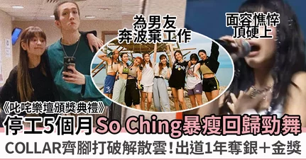 自7月MIRROR演唱會事故發生後,女子團體COLLAR成員之一So Ching(蘇芷晴)一直專心照顧因演唱會受傷的舞者男友阿Mo(李啟言),在這段時間So Ching沒有再以COLLAR成員身份出席任何活動,外界曾盛傳她會離隊。So Ching在照顧阿Mo期間,不斷在IG發布一些限時動態更新近況,其中有疑似對公司不滿、與男友甜蜜的回憶等。不過今日So Ching將在1月1日舉行的叱咤樂壇流行榜頒獎典禮上復出,終於等到COLLAR以齊人方式登場。