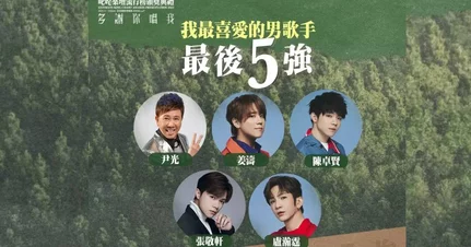 投票走勢速報,尹光始乎未受疑抽林明禎水事件影響,仍在5強之列,勁!相反,MC 張天賦、呂爵安、林家謙、柳應廷、江𤒹生成為「炮灰」。「叱咤樂壇我最喜愛的男歌手」 5強公布 (截至今日中午12時,排名依筆劃序)︰