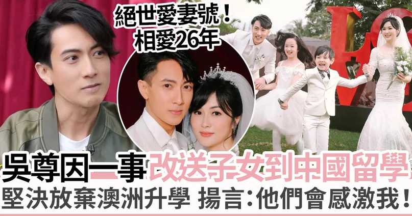 吳尊一直以來都被指是好丈夫好爸爸,出身汶萊的他家景優渥,加上事業有成令子女能夠更無憂地成長。不過已經將事業重心放在內地的他,日前接受訪談表示自己和太太計劃移居中國,而且本來計劃送子女到澳洲留學,但因一事令他改變主意,決定讓子女到中國留學,並坦言:「他們以後一定會感激我。」