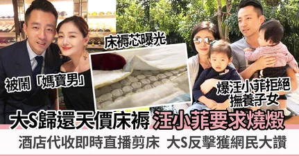 大S與前夫汪小菲離婚後新聞不斷,汪小菲不時帶同媽媽向傳媒大爆大S的不當行為。而日前他更公開表示在二人仍是夫妻期間,因為十分重視大S的睡眠問題,因此在結婚初期不斷更換床褥,直到最後換了一張天價床褥。而汪小菲的媽媽張天蘭隨後亦在直播中表示「該床墊是世界頂級大牌,要價200萬」,並直指大S與具俊曄再婚後亦未有更換床褥,憤而向大S一家怒喊「你個窩囊廢換個床墊行嗎?」