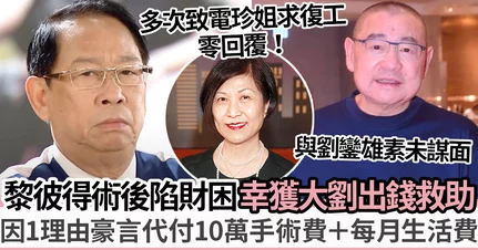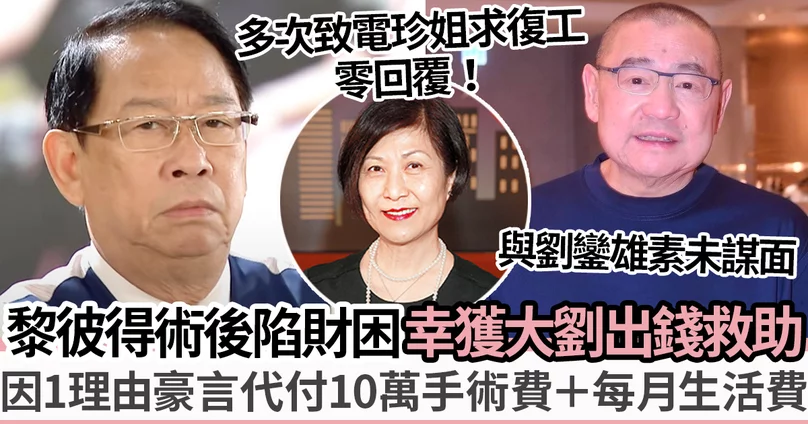 而黎彼得經濟拮据一事上報後,於昨日2月22日黎彼得竟收到一名自稱劉鑾雄秘書的電話,直言大劉是他的粉絲,喜歡《小男人周記》大古惑,並表示要作出經濟援助。起初他誤以為是電話騙案,直到詢問他的銀行帳號、手術費用及日常生活費用的金額時,才肯定是真的。他更向其他媒體表示自己從未見過劉鑾雄,從未想過他會出手相助,完全是患難見真情!