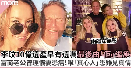 李玟出道29年演藝事業發光發亮,有傳她生前身家累積約10億港元,而她在離開前已立下遺囑,將所有遺產交由媽媽繼承。李玟與富商Bruce結婚後,將兩個繼女視同己出,但對方卻未有將她視為母親看待。她與Bruce久未合體,兩個繼女亦唔見影,亦未成為其遺產繼承人。