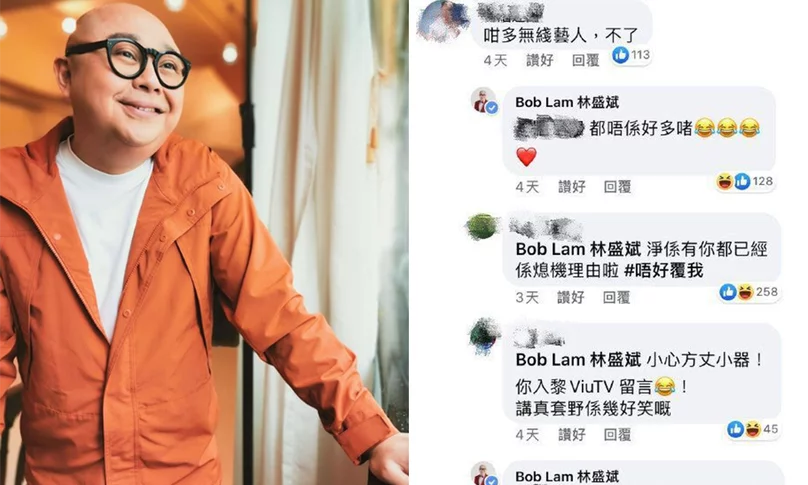 林盛斌(Bob)除了精通做DJ、司儀和主持之外,一向也活躍於社交網站,閒時更會親自回覆網民留言交流一下。近日阿Bob更不理公司界限,踩入對台ViuTV Facebook,向一眾對他有份演出的電影《西謊極落:太爆太子太空艙》負評留言者,逐一回覆,對於所有負評,阿Bob展現最高EQ,直言樂於接受各界對他的批評。