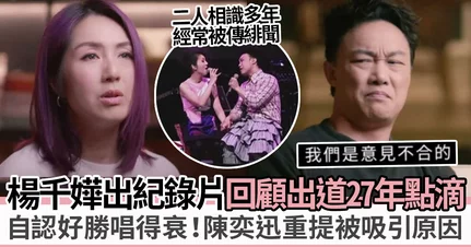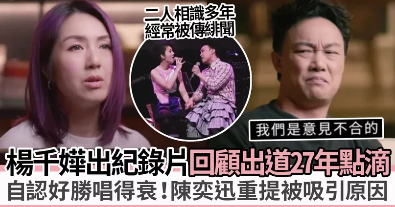 楊千嬅紀錄片自認好勝唱得衰 陳奕迅重提被楊千嬅吸引原因、嘈交多過食飯