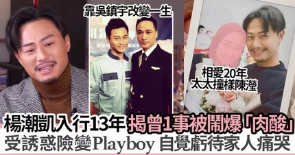 楊潮凱更於訪問中表示,假如自己沒有遇上太太,自己可能會成為「Playboy」。自己很有幸地能夠遇上一個目標一致,能夠長雙廝守的伴侶。楊潮凱與太太已經相愛二十年,當年到美國當留學生的楊潮凱,雖然曾經受到誘惑,但依然堅守愛情底線,表示「寧願後悔沒做,好過後悔做左」。