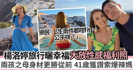楊洛婷與老公希臘旅行放閃 41歲兩孩之母性感解放火辣身材更勝從前