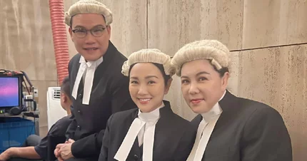 Kay日前又分享了數張以法庭為背景的拍攝花絮照,並透露出她在高溫下拍劇的感受,並因此被網民封為「最Hot嘅大狀」: