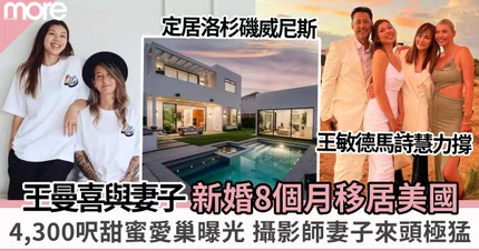 王曼喜在2014年公開「出櫃」,幸得開通父母王敏德與馬詩慧支持,她在2019年正式承認與攝影師Elaine Chen(陳逸寧)的戀情,更經常在社交平台大方放閃。這對甜蜜愛侶在拍拖3年後,於去年9月在美國加州正式結婚,當時王敏德一家都有到場參加婚禮,場面感動又溫馨!王曼喜和陳逸寧在今年4月決定帶同三隻愛犬搬到美國洛杉磯定居,更在如今結婚約8個月後首度令二人的4,300呎甜蜜愛巢曝光!