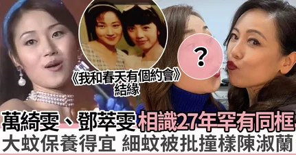 萬綺雯和鄧萃雯因1995年拍攝亞視版本《我和春天有個約會》而結緣,相知相交27年。近日,萬綺雯和鄧萃雯再次於內地節目碰頭,為《經典詠流傳》節目作嘉賓,在節目獻唱《人間有味是清歡》一曲,令人不禁回味起這對「麗花皇宮」的姊妹花。